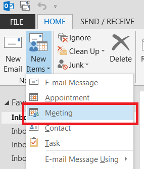 1. Select New Items and Click Meeting