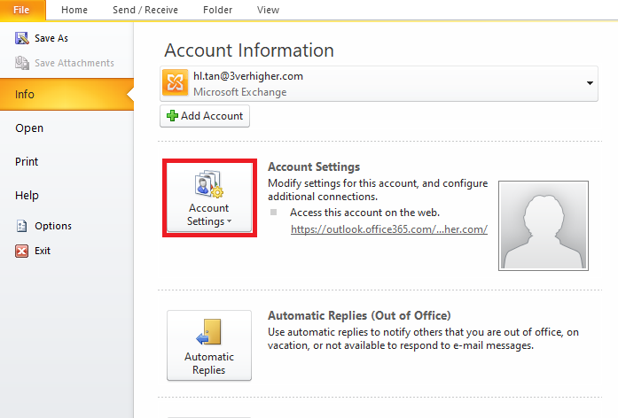 4. Select Email tab and make sure the correct account is highlighted, then click Change